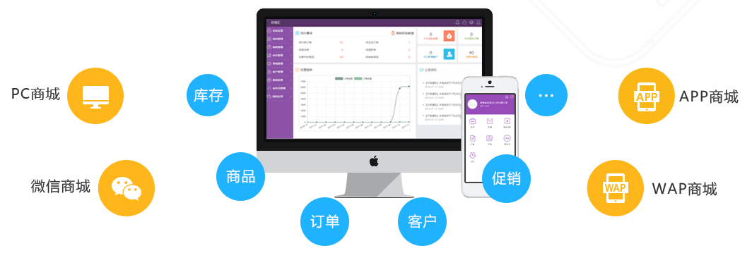 PC商城、WAP商城、微信商城、APP商城四大銷售渠道,客戶、商品、訂單、庫存、促銷互聯(lián)互通,實現(xiàn)一站式統(tǒng)一管理。