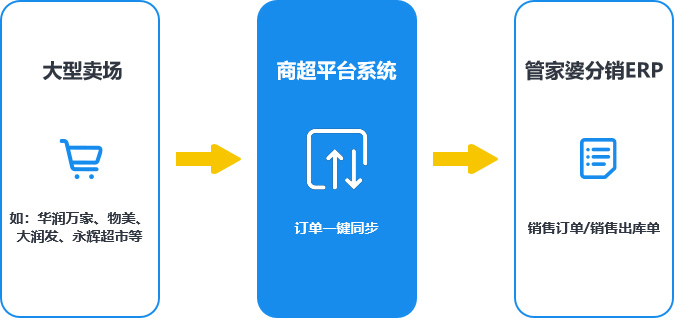 通過商超平臺系統(tǒng),一鍵把大型商超連鎖的訂單導(dǎo)入到管家婆分銷ERP中,生成銷售訂單或銷售出庫單,降低人力成本,提升效率。