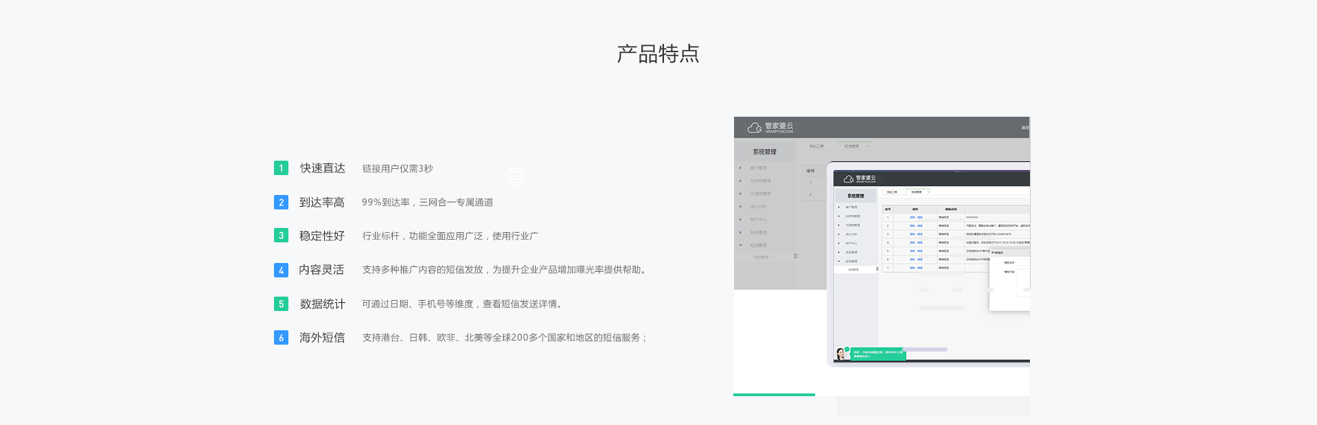 管家婆云短信,是管家婆云為管家婆軟件用戶提供的一種通訊服務(wù)的能力,支持短信驗證碼、短信通知等多種內(nèi)容推送,三網(wǎng)合一的專屬通道,達(dá)到率高達(dá)99%。
