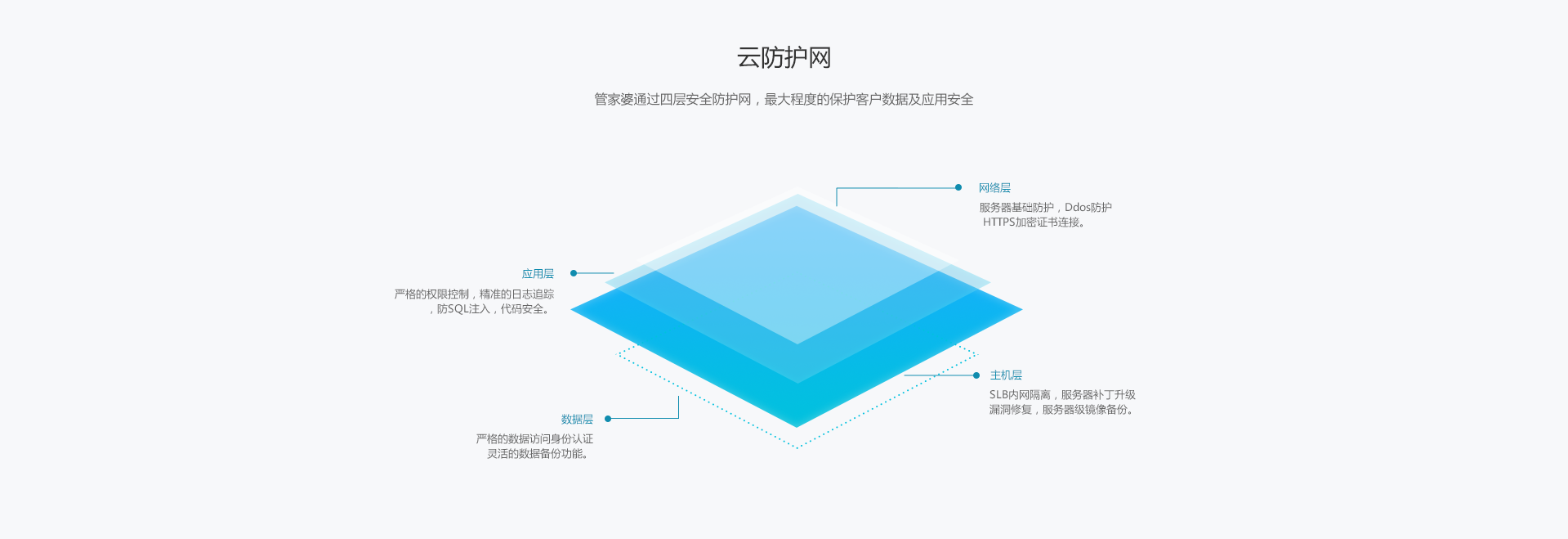 管家婆云為數(shù)據(jù)安全保駕護(hù)航,為客戶提供從主機(jī)、網(wǎng)絡(luò)到應(yīng)用的全體系安全產(chǎn)品和服務(wù)。